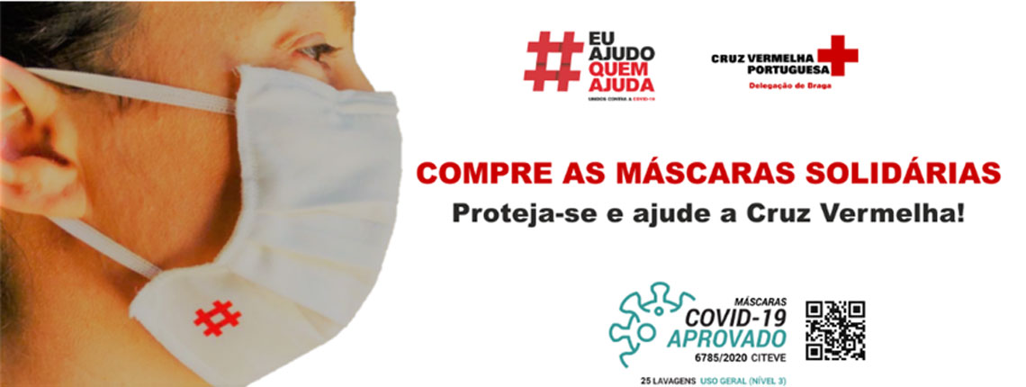 A Delegação de Braga da Cruz Vermelha Portuguesa (CVP), no âmbito da sua missão “promoção e proteção da Vida, Saúde e Dignidade Humana”, concebeu uma campanha de Angariação de Verbas que pressupõe a venda de Máscaras Sociais Solidárias, certificadas pelo Citeve, em packs de 2 unidades/5 euros. A Associação Comercial de Braga associa-se a esta campanha disponibilizando as máscaras solidárias na sua sede para aquisição por todos os que quiserem ajudar. Podem ainda fazer a encomenda do número de máscaras solidárias que entenderem necessárias para as necessidades dos vossos colaboradores através do telefone 253 201 750.